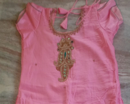 Churidars are a variant of the common shalwar pants. Shalwars are cut wide at the top and narrow at the ankle. Churidars narrow more quickly so that contours of the legs are revealed. They are usually cut on the bias, making them naturally stretchy, which is important when pants are closefitting.