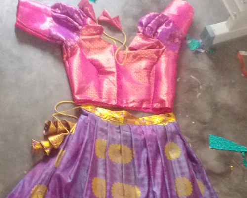 The lehenga, lehnga or langa or लेहंगा (also known as a ghagra, chaniyo, Paro, paavada, or lacha) is a form of ankle-length skirt from the Indian subcontinent. Different patterns and styles of traditional embroidery are used to decorate lehenga. Gota patti embroidery is often used for festivals and weddings.